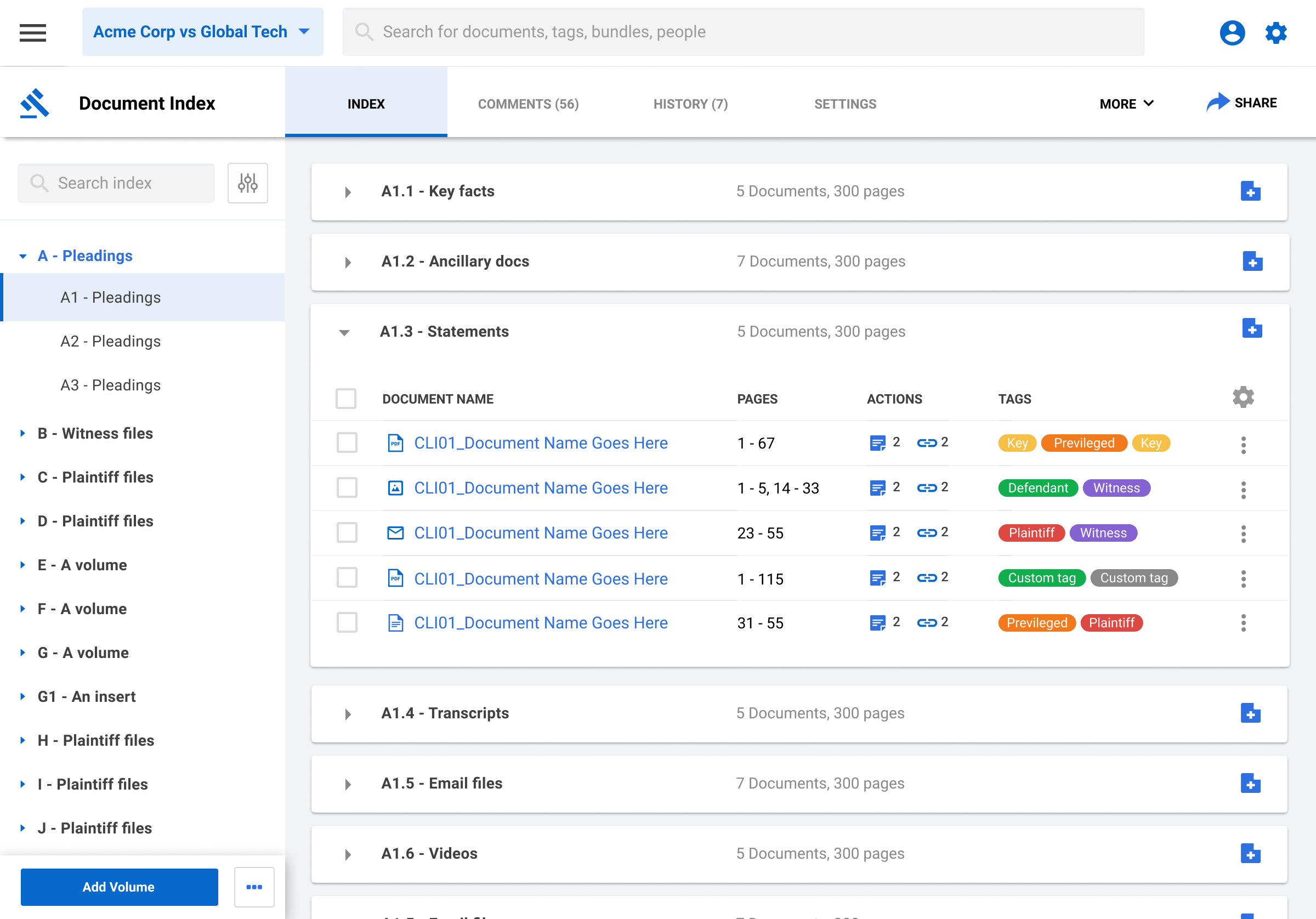 Create volumes of bundles for court reporting