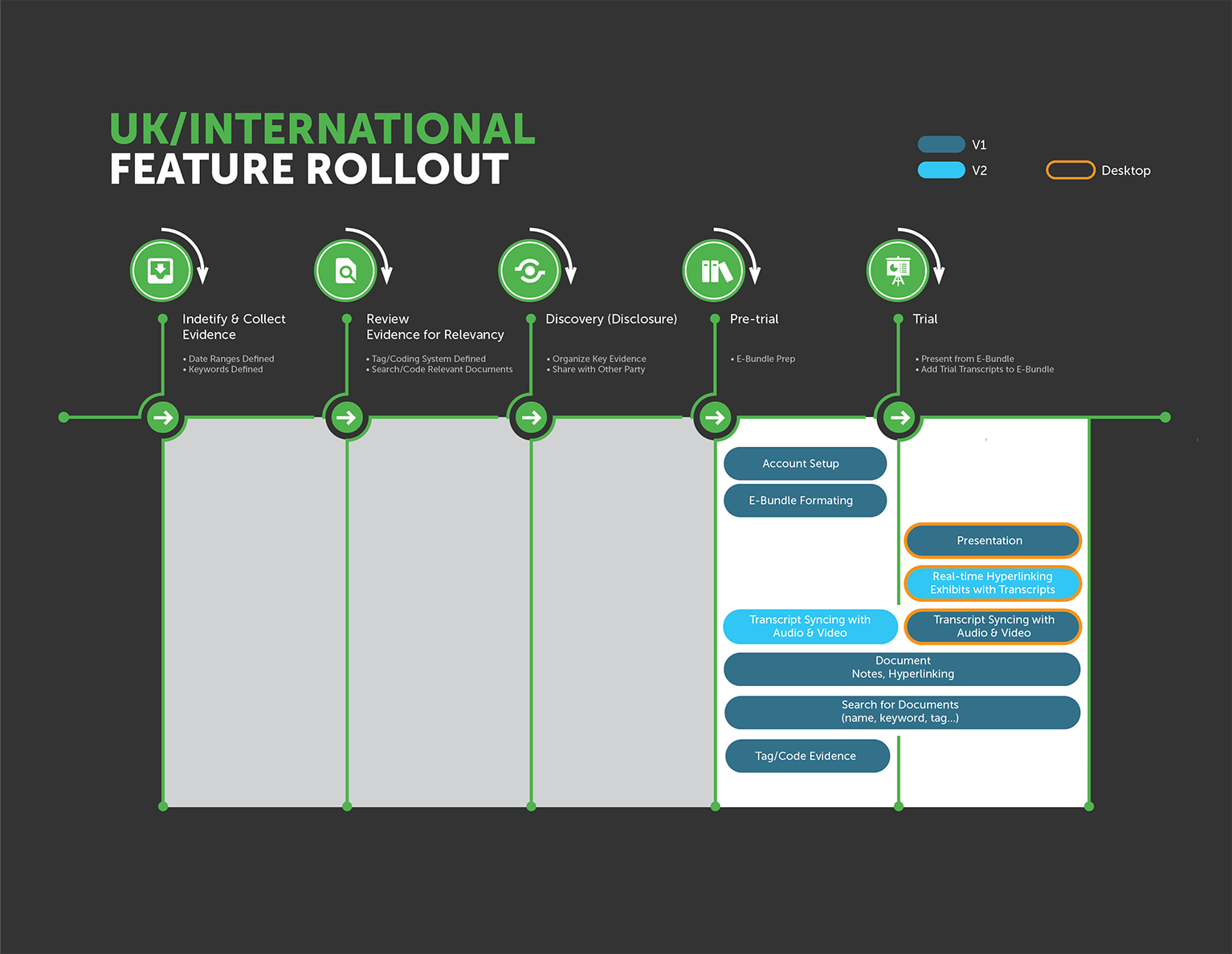We used surveys to collect quantitative data from the US, UK, Australia, Europe and parts of Asia. If you're reading this and you're working on a project requiring User Research with lawyers, good luck with setting up an interview with them!