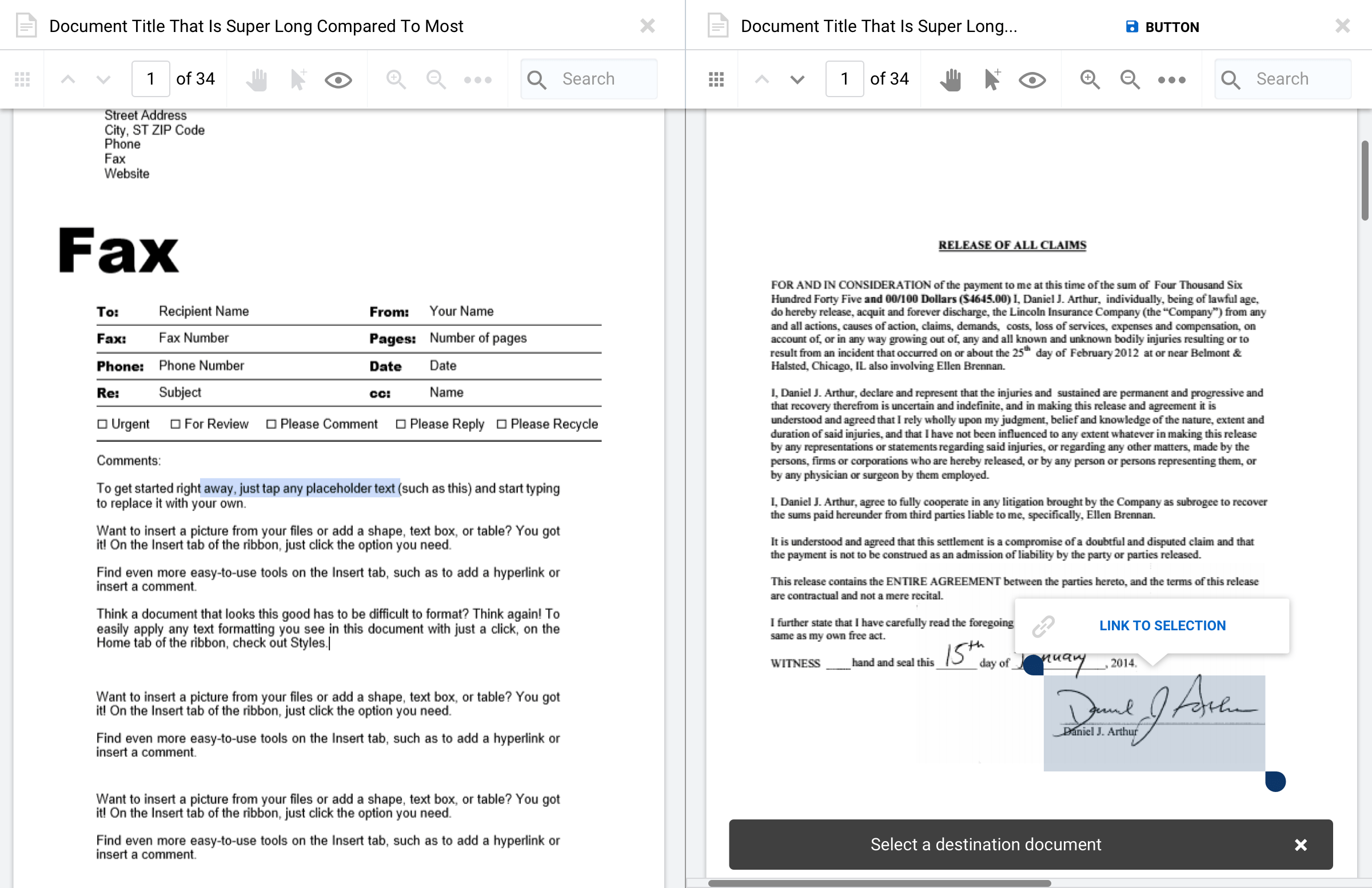 View documents and transcripts side by side for comparison