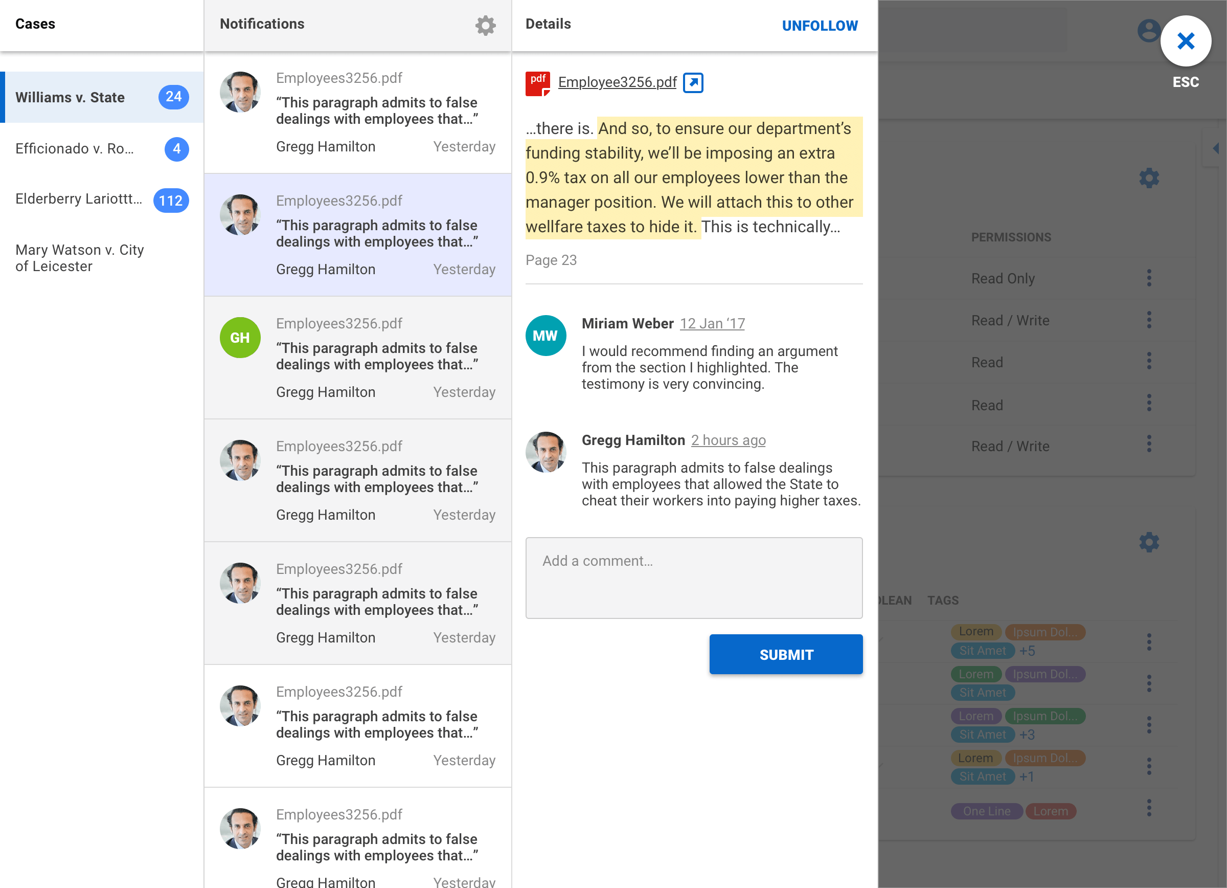 Notifications across multiple cases in one place
